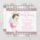Adorável convite de chá de fraldas cor-de-rosa e dourado com a menina do anjo, brilho rosa e pérolas. Este convite para chás de fraldas cor-de-rosa e ouro, bonito e elegante, é facilmente personalizado para o seu evento, adicionando os seus detalhes no estilo de letra, cor e texto da sua escolha. Você também pode alterar a cor de fundo. Design impressa sem nenhum arco brilhante de pérolas real, etc.