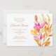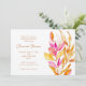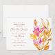 Este convite de chá de noiva apresenta flores cor-de-rosa quentes em aquarela com sotaques botânicos suaves para um visual boho moderno. O design pintado parece romântico e relaxado, tornando-o uma escolha linda para festas no jardim, chás de noiva de brunch e celebrações ao ar livre. Personalize com detalhes do evento, nomes e datas para combinar com os planos do seu chá. Uma opção coesa para anfitriões que desejam um estilo floral elevado sem um clima tropical.