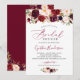 Convite de Chá de Noiva Boho Floral Caligrafia Borgonha.