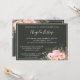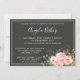 Aracel de rosa rosa romântica atemporal com sotaques de coral em um fundo dramático de carvão - tres chic! Este lindo desenho de casamento apresenta elementos florais e botânicos na moda com um visual fresco e moderno.