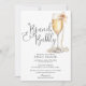 Este convite elegante de chá de noiva brunch e champanhe com letra cursiva pode ser personalizado com todas as informações do seu evento especial e código QR do registro no verso. Criado por Thisisnotme©