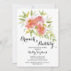 Lindas flores em tons de rosa e vermelho em aquarela e folhagens elegantes destacam esses convites de chá de noiva com café da manhã e espumante. ITENS CORRESPONDENTES em nossa loja.