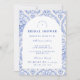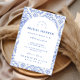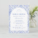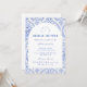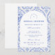 Este elegante design de chá de panela de noiva apresenta um refinado padrão floral vintage em tons clássicos de azul e marfim, inspirado em tecidos botânicos tradicionais e impressões de jardim de família. O fundo decorativo combina delicadas flores, listras e padrões ornamentais que enquadram um layout arqueado gracioso para os detalhes do evento. A paleta azul atemporal evoca o charme da porcelana antiga e das ilustrações de jardins europeus, criando uma estética sofisticada e romântica. Perfeito para chás de panela de noiva em jardins, celebrações de casamento clássicas ou encontros elegantes de noiva com um estilo vintage atemporal.