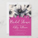 Lindo e simples design moderno preto e branco, com flores rosa magenta brilhante para chá de noiva. Um visual clássico, mas caprichoso com flores pretas, cinzas e creme e fontes branco-avermelhadas. Edite todo o texto para as suas próprias informações. Quer você esteja procurando um estilo floral clássico, um clima boho ou um estilo metropolitano moderno e sofisticado, isso pode funcionar para você! Convite de Chá de Noiva Rosa Magenta Floral Aquarela Fofo