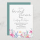 Convites de Chá de Noiva com Flores Silvestres Coloridas em Aquarela em Verde Suave