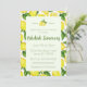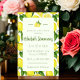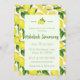 Traga o brilho do sol para o seu próximo evento com este convite divertido e alegre de chuveiro de limão! Com um fundo de limões e folhagens acompanhado por uma combinação de texto moderna e cursiva, este convite de cores vibrantes é perfeito para o seu próximo chá de bebê, chá de noiva ou chá de casamento! Este convite de limão é perfeitamente único, sofisticado e vintage, com sua combinação de limões em aquarela e texto, tornando-o o complemento perfeito para o seu próximo evento!