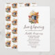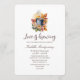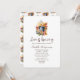 Elegante design de chá de noiva de outono inspirado no tema 'o amor está fervendo', apresentando uma xícara de café em aquarela com vapor suave, folhas de bordo e crisântemos brancos. Tons quentes de laranja e creme criam uma atmosfera sazonal aconchegante, rústica e floral.