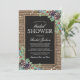 Nossos últimos Convites de Chá de Noiva Rústico de Inverno são uma mistura caprichosa de aconchego e requinte, uma homenagem à beleza encantadora do inverno. Adornando um fundo de madeira rústica, há um centro de quadro-negro preto, elegantemente embelezado com pinhas de Natal, frutos silvestres, folhagens e delicadas manchas brancas de neve. As opções de personalização oferecem os toques finais para este convite encantadoramente único. Perfeito para a noiva que deseja convidar seus entes queridos para compartilhar de sua alegria, num estilo tão único quanto a sua história de amor.