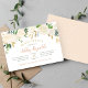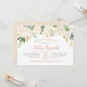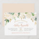 Uma interpretação calorosa e romântica do convite de chá de noiva de rosa branca e folhagens em formato horizontal. O texto em dourado combina-se lindamente com flores em aquarela e folhas de eucalipto exuberantes para uma estética de jardim elegante. O verso apresenta um padrão de bolinhas em pêssego suave que adiciona um detalhe feminino final. Todo o texto e detalhes do evento são fáceis de personalizar para se adequar à sua celebração.