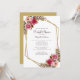 Convite de Chás de Noiva Elegantes apresenta aquarela botânica de casamento romântica em pêssego, rosa e roxo exibida com folhagens verdes em um fundo branco crocante. Uma moldura geométrica em cristal com brilho dourado chique completa o design moderno, enquanto a redação tradicional e clássica fornece sofisticação atemporal. Personalize o design do chá de noiva com seus detalhes em letras e caligrafia roxa cassis elegantes. O verso do cartão é dourado sólido. Sinta-se à vontade para entrar em contato comigo em convitesuites@gmail.com se tiver alguma dúvida sobre este ou qualquer um dos nossos designs.