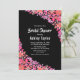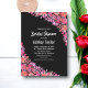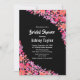 Este convite de chá de noiva floral elegante é perfeito para um chá de noiva floral moderno de verão. O design romântico apresenta uma grinalda floral em aquarela rosada com tipografia branca elegante em um fundo preto.