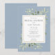 Convite de chá de noiva em azul empoeirado elegante com folhas de eucalipto em aquarela botânica. Este convite elegante pode ser personalizado com as informações do seu chá de noiva, em tipografia moderna. Criado por Thisisnotme©