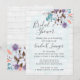 Destaque seu casamento country sulista com o charme elegante do estilo aquarela! Este design único apresenta um fundo realista com textura de madeira rústica e elementos de spray floral botânico de algodão doce. A paleta de cores da moda usa tons suaves de coral, lavanda, turquesa e tons terrosos. Celebre seu amor com amigos e familiares em todos os confortos caseiros da vida sulista.