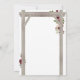 Convites de chá de noiva de casamento outonal com um fundo branco elegante e sofisticado que pode ser alterado para qualquer cor, uma exibição floral em aquarela elegante burgundy, vermelho marsala e blush em uma pérgula de madeira rústica de casamento, um coração esculpido com as iniciais dos noivos, e um modelo de convite de festa de noivado moderno.