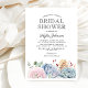 Convites elegantes para chá de noiva com um fundo branco clássico, uma exibição em aquarela de flores pastéis e suculentas, e um modelo de festa de noiva sofisticado que é fácil de personalizar.