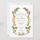 Convite de chá de noiva tropical elegante pintado à mão em aquarela, emoldurado por um delicado arranjo de verde tropical exuberante e colorido e flores rosa e laranja.