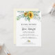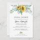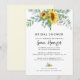 Convite de chá de noiva elegante e rústico apresenta girassol em aquarela com eucalipto verde e caligrafia em letra moderna.