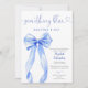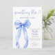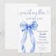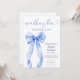 Este convite de chá de noiva apresenta um elegante laço azul e tipografia sofisticada. Criado por Thisisnotme©