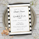 Projetado para combinar com nossa coleção de casamento de listra clássica. Com um fundo de listra preto e branco clássico, este convite de chá de noiva elegante apresenta uma borda de foil dourado falso elegante emoldurando os detalhes do seu chá de noiva em tipografia chic. Projetado por Thisisnotme©