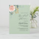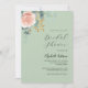 Um fundo verde salva. Decorado com um floral dourado rosa e rosa velho, rosa e folhas de eucalipto pintadas em aquarela, raminhos, folhagens e um raminho dourado falso. Personalize e adicione o nome da noiva e detalhes da festa.