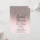 Convites Chá de Noiva Prateado e Rosa Bege com Brilho Espel