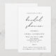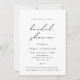 Cartão de convite de chá de noiva personalizado com design de caligrafia preta moderna.