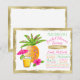 Convite de chá de noiva tropical com belo abacaxi, bebida tropical e flor de hibisco em um belo fundo pintado de dourado. Este convite de chá de noiva de luau soiree é facilmente personalizado para o seu evento, basta adicionar seus detalhes no estilo de letra e redação de sua escolha. Você também pode adicionar uma cor de fundo. Este é um design impresso sem folha de alumínio real, glitter, etc.