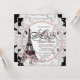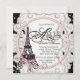 Convite de chá de noiva Paris elegante com pérolas cor-de-rosa, renda e Torre Eiffel. Este convite de chá de noiva preto e rosa é facilmente personalizado para o seu evento.