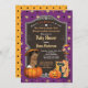 Perfeito para outono, época de Halloween.Receba este convite bonito agora! Tema: Halloween - truque ou trato.Estilo: Vintage retro com um toque de chic moderno.Cores: Roxo, ouro, laranja, preto.Gráficos: abóboras, saco de tratamento, doces, estrelas douradas e quadro retro (estão disponíveis em compro outras tonalidades da pele e sexo)