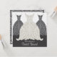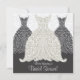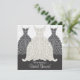 O vestido de noiva e noiva estilizado e os vestidos de damas de honra em branco, preto e Platina. Personalize com seu próprio texto. Ilustração original por pj_design. O convite para apresentação de noivas apresenta um vestido de noiva de lacy altamente estilizado e vestidos de damas de honra decorados com pombinhos, videiras e bagas. Decorado com um fundo cor damasco.