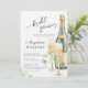 Chá de panela em estilo delicado, elegante, minimalista, com uma encantadora ilustração aquática de uma garrafa de vinho e de óculos de vinho.