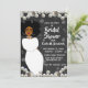 Este elegante chá de panela preto e branco apresenta uma fronteira de pérolas sobre um fundo preto com uma mulher afro-americana de vestido branco. Este convite dará uma primeira impressão de estilo e elegância para o seu grande evento.