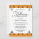Chá de panela do na moda, o alaranjado e o preto do Dia das Bruxas que caracteriza uma parte superior e uma parte inferior ornamentado da beira do damasco do laço. Texto customizável, preto do convite. Para pedidos ou a ajuda feita sob encomenda com personalização por favor use a relação do contato da loja acima.