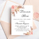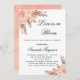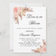 Para um chá de panela moderno estilo boho. Um fundo branco na moda. Decorados com ouro rosa e flores, rosas e erva-pampas cor-de-rosa. Personalize e adicione um nome e detalhes da parte. Texto: O amor está em Bloom