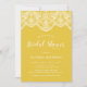 Convide convidados para o seu evento com este chá de panela personalizável. Ele apresenta uma elegante terra de rendas brocadas em um fundo amarelo. Personalize adicionando seus detalhes. Este chá de panela de rendas é perfeito para qualquer tema ou estação de eventos.