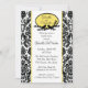 Comece seu evento bem com nosso Chá de panela apresentando uma bela estrutura oval com pássaros em galhos com Damasco branco e preto com trim amarelo. Combinação de cores preto e branco de tendência. Apenas personalize nosso convite com suas informações de casamento e você está pronto para ir