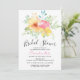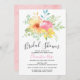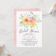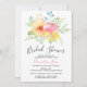 Um arranjo moderno e moderno de aquarela cobre este chá de panela. Flores amarelas e cor-de-rosa são cercadas por flores verdes e turquesas. O chá de panela e o nome da noiva estão escritos em um roteiro de tendências. Este item faz parte da coleção Felicity in Bloom.