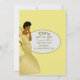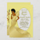 Este suave verão amarelo e dourado mostra um convite de noiva afro-americana vestindo um vestido de ouro. Este convite é perfeito quando você quer algo bonito e elegante.