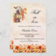 Um fundo rosa dourado, cor-de-rosa-claro. Decorado com uma safra lateral e flores laranja. Personalize e adicione um nome e detalhes da parte.