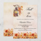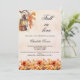 Um fundo rosa dourado, cor-de-rosa-claro. Decorado com uma safra lateral e flores laranja. Personalize e adicione um nome e detalhes da parte.