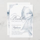 Apresentação do Chá de panela Arco Azul Este convite elegante apresenta um arco azul encantador e uma fita de rendas rústicas, perfeita para um chá de panela "algo azul". Projetado com aquarela pastel macia e roteiro manuscrito romântico, exude uma vibração galopante. Ideal para um chá de panela azul empoeirado, esse convite é perfeito para a noiva boêmica coquete que preza um toque de romance e elegância.