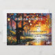 Um chá de panela artístico divertido com um casal com guarda-chuva em uma faixa de árvore com luzes e folhas coloridas.