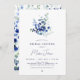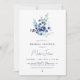 Chá de panela floral azul no estilo minimalista com buquê de flor azul e padrão de volta. Você pode personalizar este convite com seus próprios detalhes na seção "Personalizar este modelo".