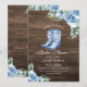 botas de chá de panela azul de cowgirl convites para madeira rústica floral ocidental