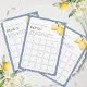 Aproveite a sua chá de panela com este jogo de "Bingo Chá de panela", com limão floral, azulejo azul e texto editável. Adicione facilmente seus próprios detalhes clicando na opção "personalizar".