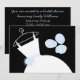 chá de panela bonito com um vestido estilizado de casamento e flores em azul e branco sobre fundo preto. Um design personalizável para você personalizar com seu próprio texto, imagens e ideias.