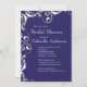 Nosso belo chá de panela azul é o início perfeito para seu chá de panela primavera, chá de panela de verão, chá de panela de outono ou chá de panela de inverno que sua noiva e hóspede irão amar. Nossos convites de chá de panela elegantes apresentam um floreio floral branco vintage em um fundo azul marinho e apresentam um retorno correspondente! Visite nosso compro para ver opções de cores adicionais neste convite para chás de casamento.