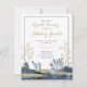 Convites Chá de panela azul Dourado Boho Floral marinho