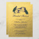 Chá de panela azul Dourado do pavão. © de BlissfulWedding em Zazzle. Estes convites lindos são perfeitos para um chá de panela temático do pavão do vintage. Dois pavões bonitos na bandeira do vintage e o texto em uma pia batismal azul escuro todos em uma folha de ouro imprimiram o fundo do efeito da foto, criam um chá de panela romântico original, à moda. Outro colore disponível.