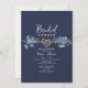 Chá de panela moderno, elegante, boho, azul e marinho floral empoeirado, com flores silvestres e monograma de cordas de ouro sofisticados - com iniciais de noiva e noivo.